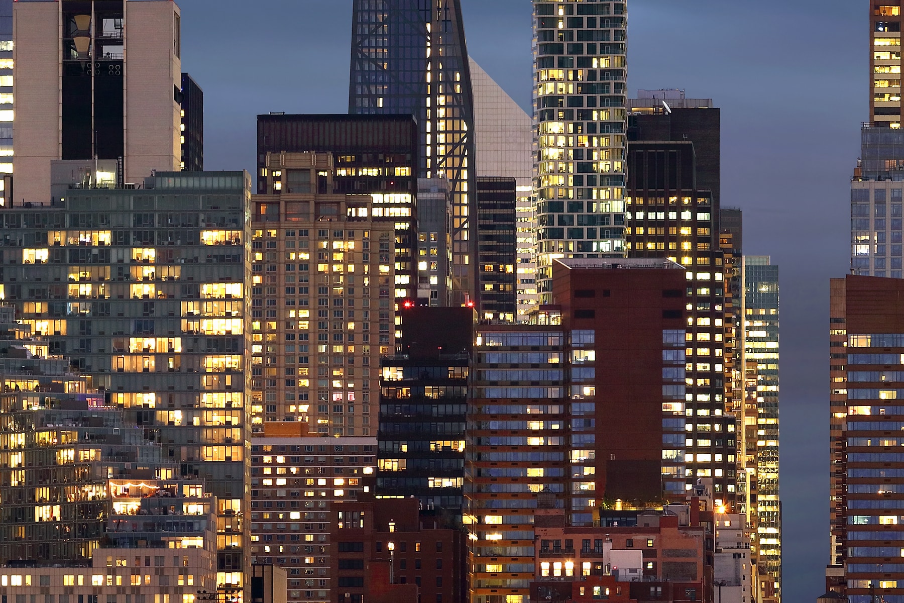 Captured during the enchanting twilight hours, this breathtaking panorama highlights Manhattan's iconic skyline in a perfect harmony of natural and artificial light. The city lights sparkle vividly against the serene blue-hour hues, creating a magical atmosphere unique to this time of day. By skillfully combining bracketed and long exposures, I achieved a perfectly balanced illumination despite the ever-changing lighting conditions, ensuring the intricate details of New York's famous landmarks are preserved in stunning clarity.