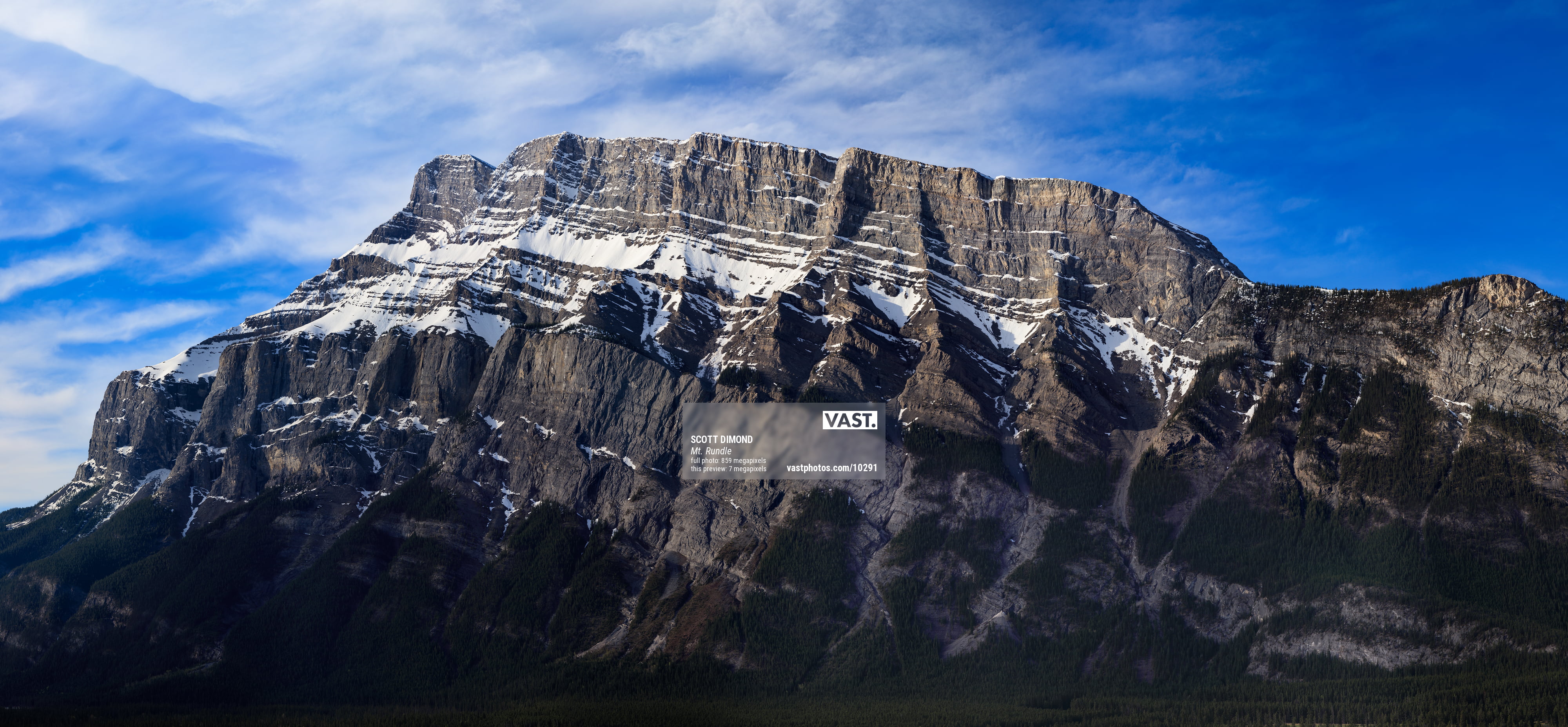 So, one fine morning in May, I set up the equipment I needed to create this VAST photo and worked quickly, while the sun was still low and the beautiful wispy clouds danced overhead, to capture the over 250 individual photos I would need to create this exceptionally high resolution photo. I decided to feature just Mount Rundle itself without any of the surrounding landscape because it is such a powerful subject.If you have ever experienced this morning view for yourself, you know how mesmerizing it can be and just how unaware you become of what else is around you. I think this photo accurately recreates that feeling of just you and Mount Rundle in all its glory.