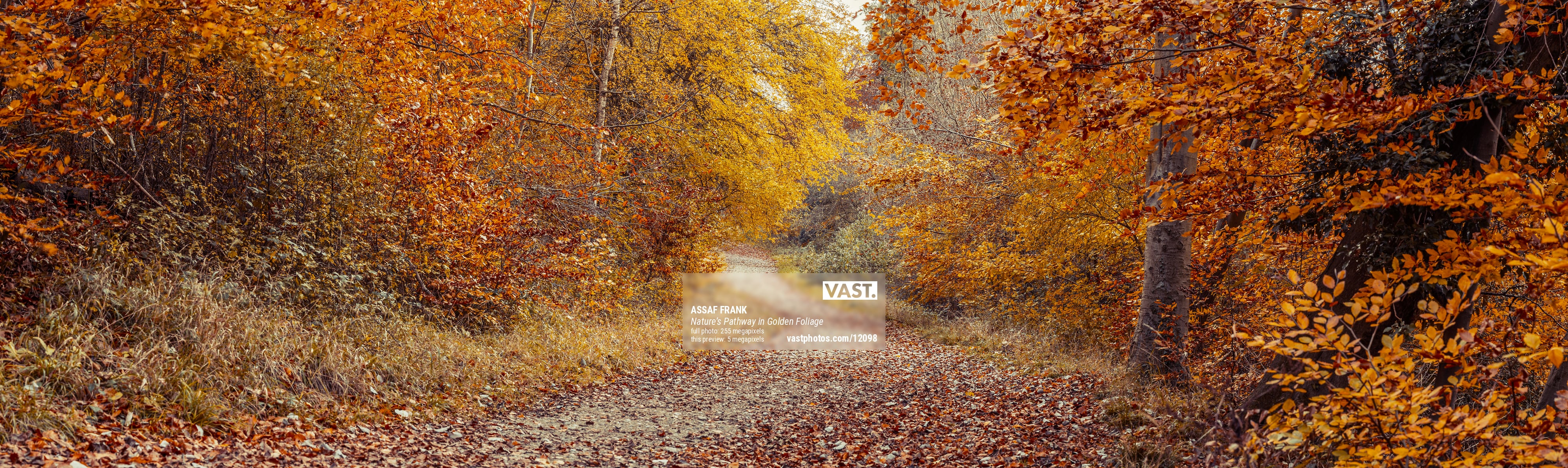 As the path leads deeper into the woodland, the autumnal glow intensifies, creating a rich, harmonious palette of warm tones. The untouched undergrowth and the gentle sway of branches in the breeze add to the serenity of the scene. This idyllic autumn setting captures the fleeting beauty of the season, offering a quiet retreat for hikers, nature lovers, and photographers alike. The pathway symbolizes a peaceful journey through nature, where the crisp air and vibrant foliage create a truly mesmerizing landscape.