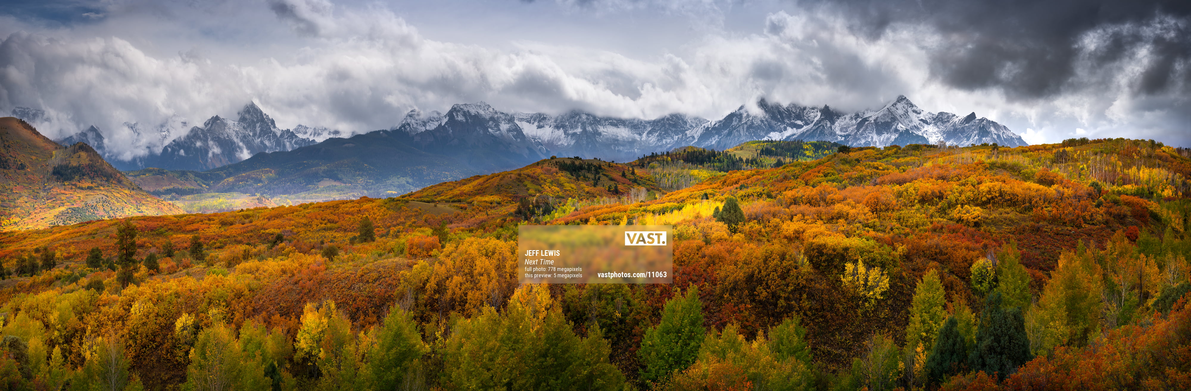 We did plenty of exploring and hiking, but I made a stop at a classic location, the Dallas Divide overlook, for this image. With a rainbow of fall colors, dramatic weather, and a coating of snow on the high peaks, the scene was just too perfect to resist. We spent a few hours here, the highlight of which was certainly the process of creating this VAST photo. I hope you enjoy it!