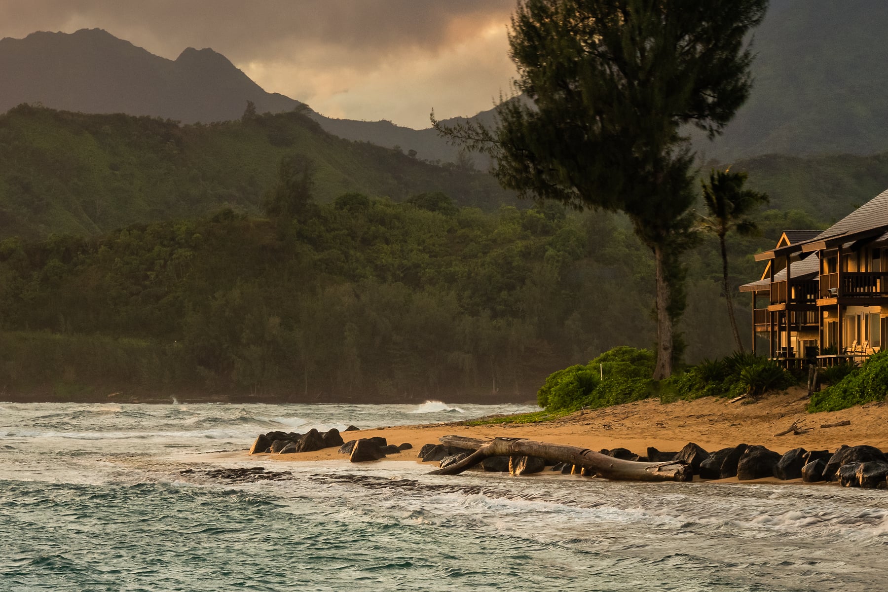 First light spreads softly over the north shore of Kauai, brushing the clouds, waves, and wet sand with a glow that feels almost unreal in its calm. Standing alone on the beach near Hanalei Bay, before the day’s first footprints appear, you’re wrapped in the quiet rhythm of the surf and the sense that this moment is yours and yours alone.