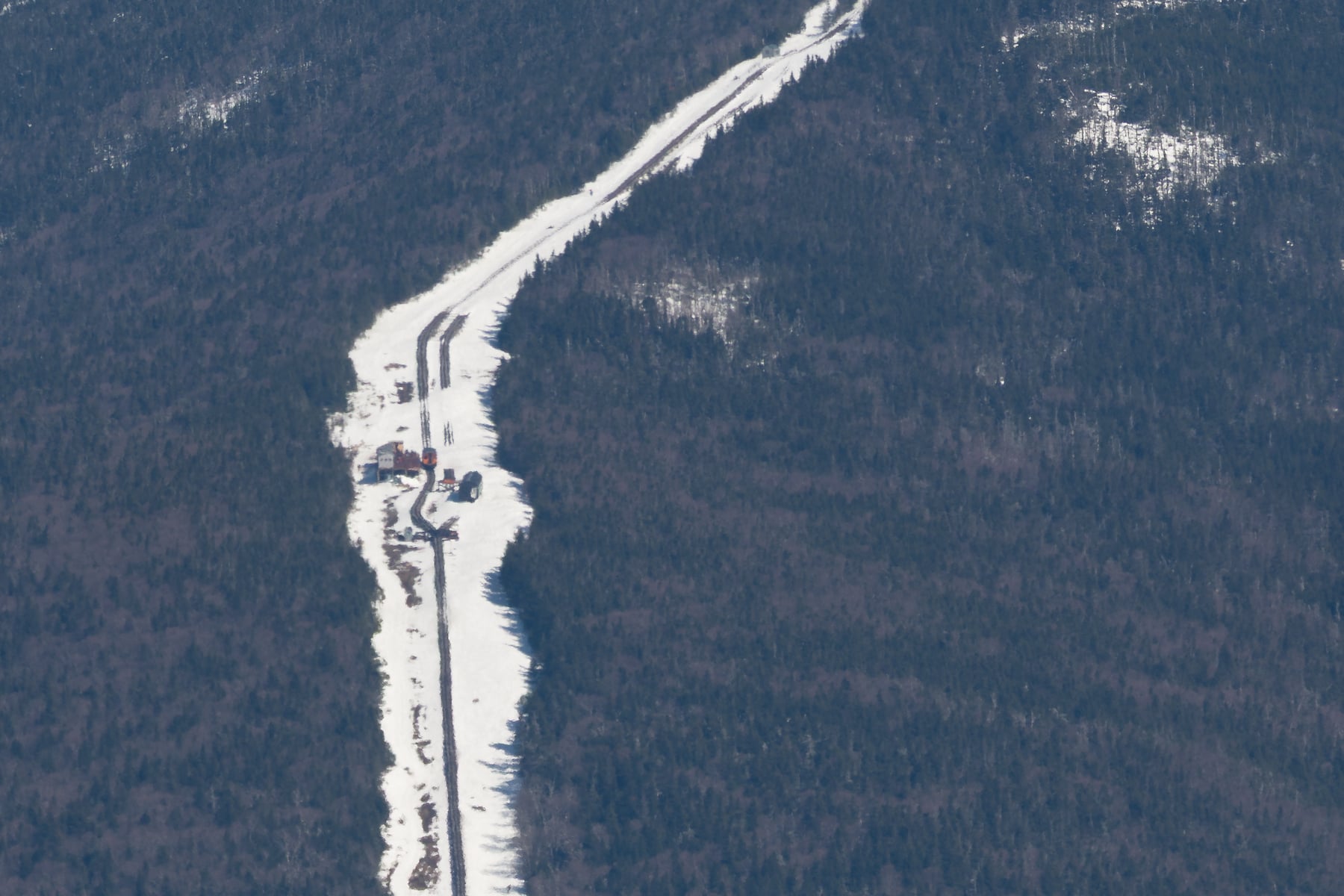 In 1861, the Mount Washington Cog Railway was completed—the first mountain-climbing cog railway in the world. It operates today, offering visitors a dramatic ride to the summit. During the winter, the cog railway runs half-way up the mountain to Waumbek Station and one of the trains is visible in this panorama. Also opened in 1861, the Auto Road is one of the oldest man-made tourist attractions in the U.S., allowing travelers to drive to the top and experience the panoramic views firsthand.
