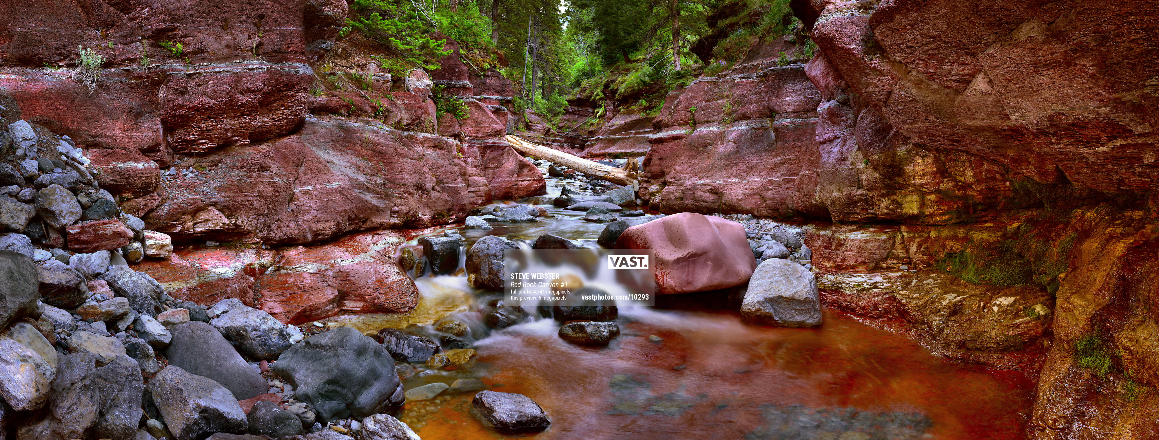 This place is aptly named Red Rock Canyon and it's my favourite place in the world. Making VAST photos here is particularly challenging due mostly to the temperature of the water, which comes from local glaciers, making it freezing cold! I wear full wetsuit pants with built in socks when shooting here as it's impossible to stand in the water for more than few seconds otherwise. If you fall into the water you better get out quick as hypothermia will get you within a few minutes. The beauty and seclusion of the canyon along with the cold, clear fresh water (which is the best tasting water in the world) provide for an absolutely beautiful experience.