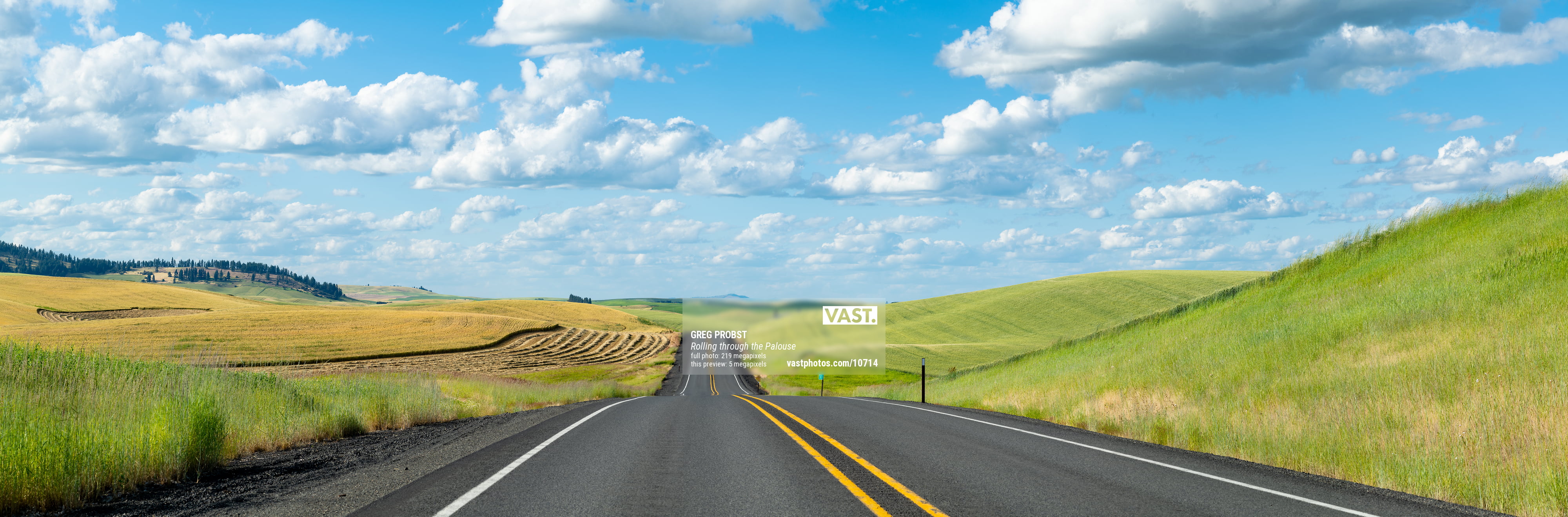 The breathtakingly beautiful rolling hills of the Palouse region of eastern Washington is a photographers dream. Morning and evening light on the vast fields of wheat, barley, lentils and canola will make you feel you are in a magical place. During the growing season the fields are in a constant color shift and just a few days can make all the difference in what you see. I've been to the Palouse dozens of times and have my favorite vantage points where I will sit and watch the nuances of light and color change through out the day before I begin making images. This image I call "Rolling through the Palouse" is one example of just that, sitting and waiting for the moment and I think I've made a pleasing image. I hope you enjoy viewing it like I did making it.