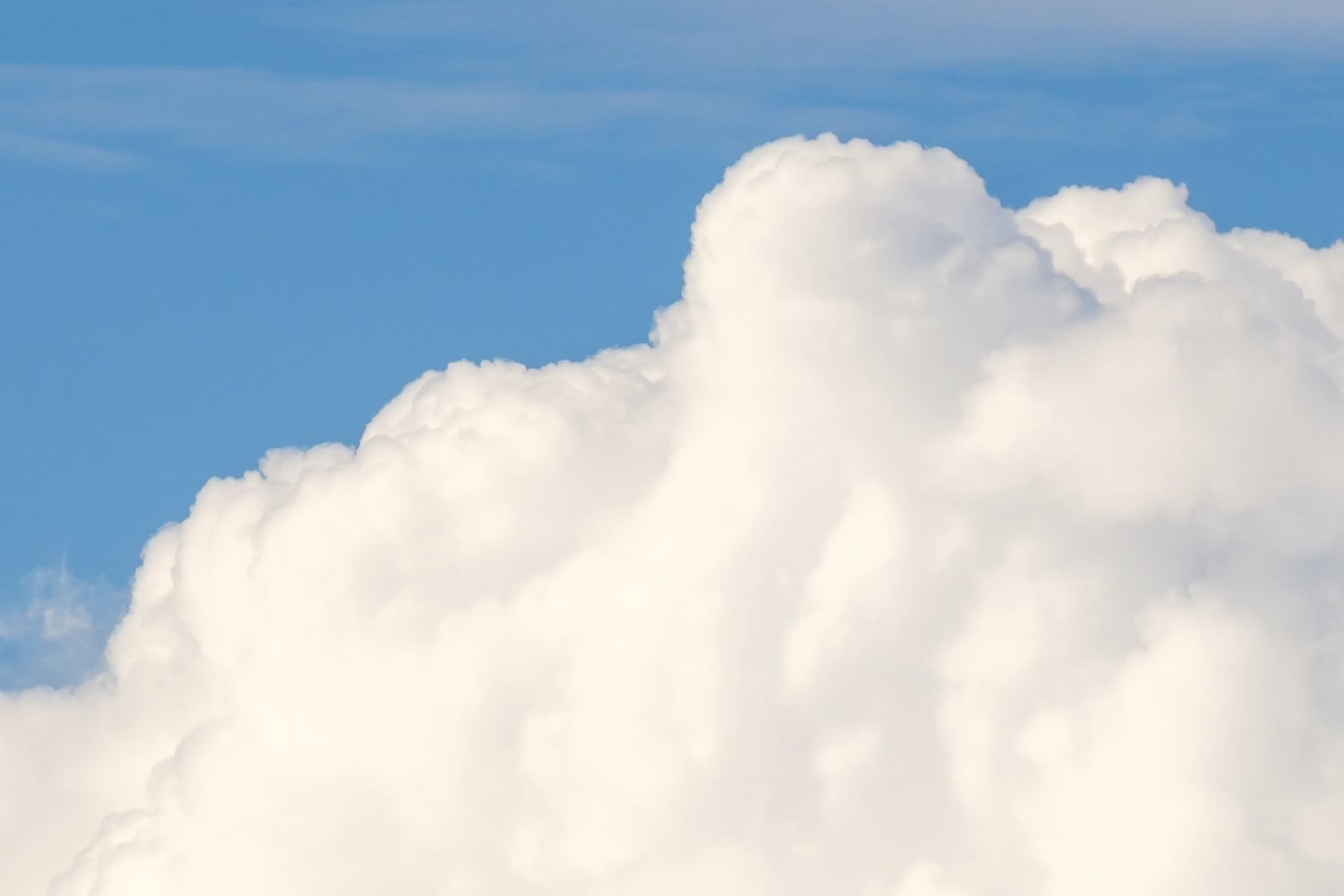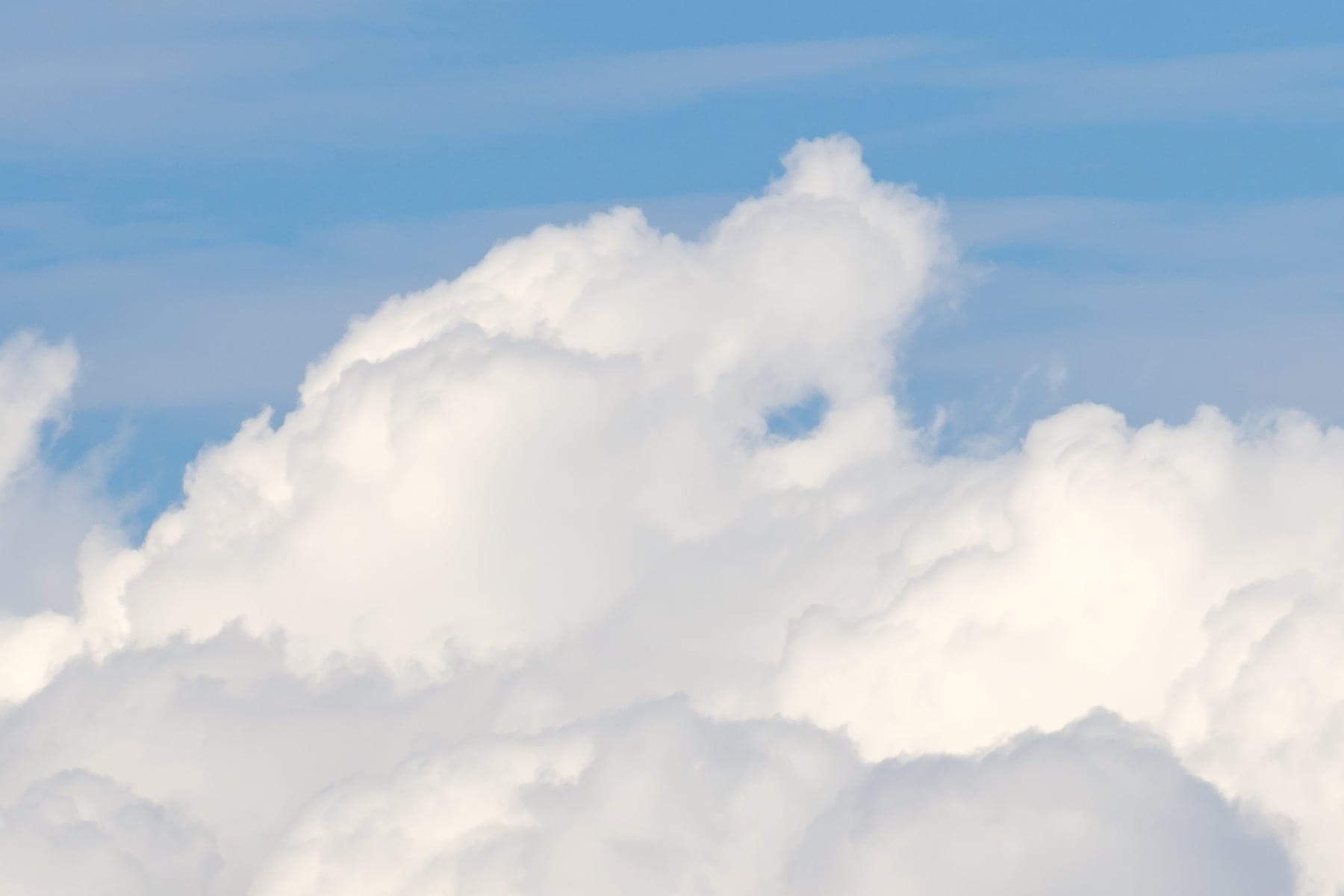 This panoramic photograph showcases the mesmerizing beauty of a tranquil seascape. A vast expanse of turquoise blue water stretches seamlessly into the horizon, where it meets a dramatic sky adorned with billowing white clouds. The soft gradient of ocean blues contrasts harmoniously with the crisp cloud formations, creating a calming and immersive visual experience. A distant sailboat can be spotted on the horizon, adding a sense of scale and adventure to the serene setting.
