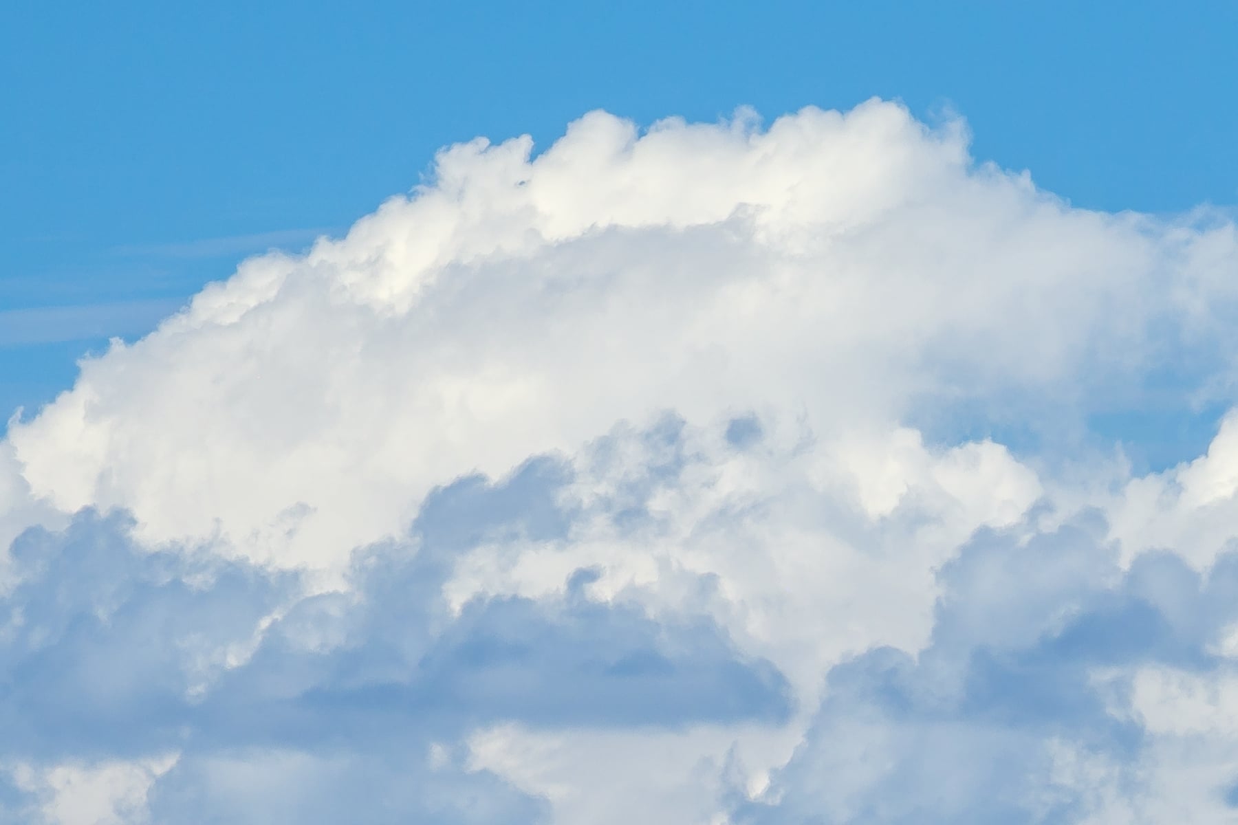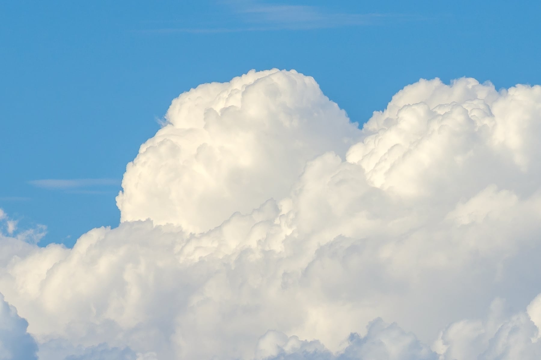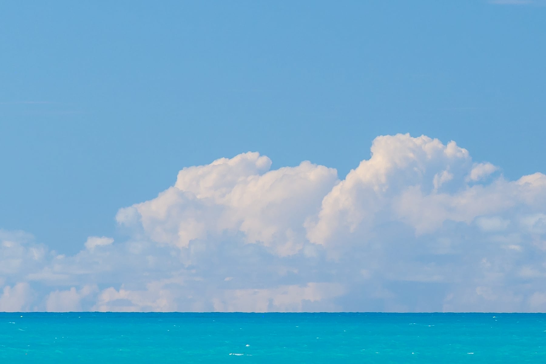A dramatic cloud formation spans the horizon, enhancing the composition with its fluffy textures and striking contrast against the vivid sky. The image radiates calmness and freedom, perfectly portraying an idyllic day on the open water. The pristine colors and balanced elements evoke a sense of paradise, making it a captivating visual escape.