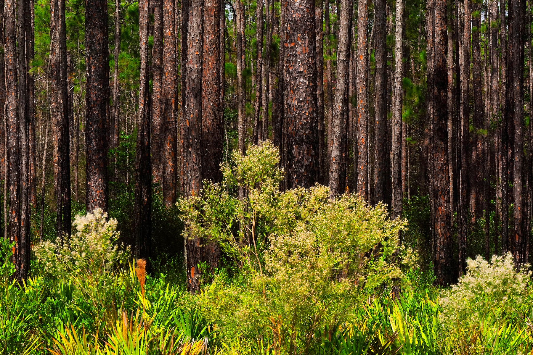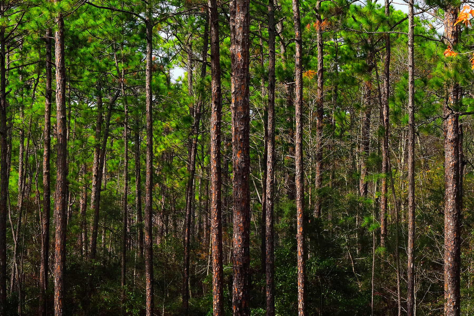 The forest encompasses over 20,000 acres of land, featuring a mix of longleaf pine and turkey oak forests, as well as cypress swamps and wetlands. The longleaf pine forests are a unique feature of the area, with mature trees reaching heights of up to 100 feet, creating a towering canopy overhead.