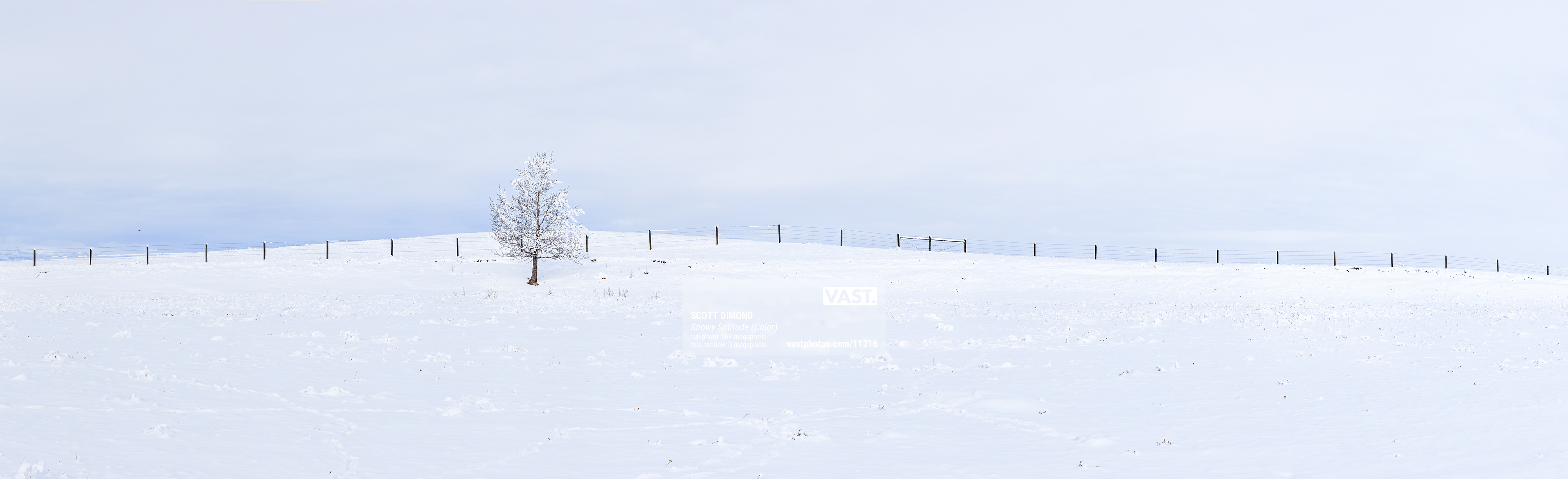 Then early in March of 2022, the perfect storm arrived. A nice snowfall of the moist sticky kind. Just enough to cover everything and stay in place but still make the roads easily drivable. As soon as I realized what had fallen overnight, I was out the door. There was no guarantee that the snow that had fallen at my home had also fallen at the lonely tree, about an hour’s drive away, but I had to give it a try. Upon arrival, I was pleased to see that the same snow had fallen at the location and was still sitting on the tree’s branches. In some places, the snow even sat on the thin barbed wire. Perfect! I got to work on capturing the scene as an ultra-high-resolution VAST image. I worked as quickly as I could, as I knew the snow would not remain in place for long. In the end, I was able to get all the shots I needed, and once assembled, the resultant image was just as I had imagined. Mission accomplished!