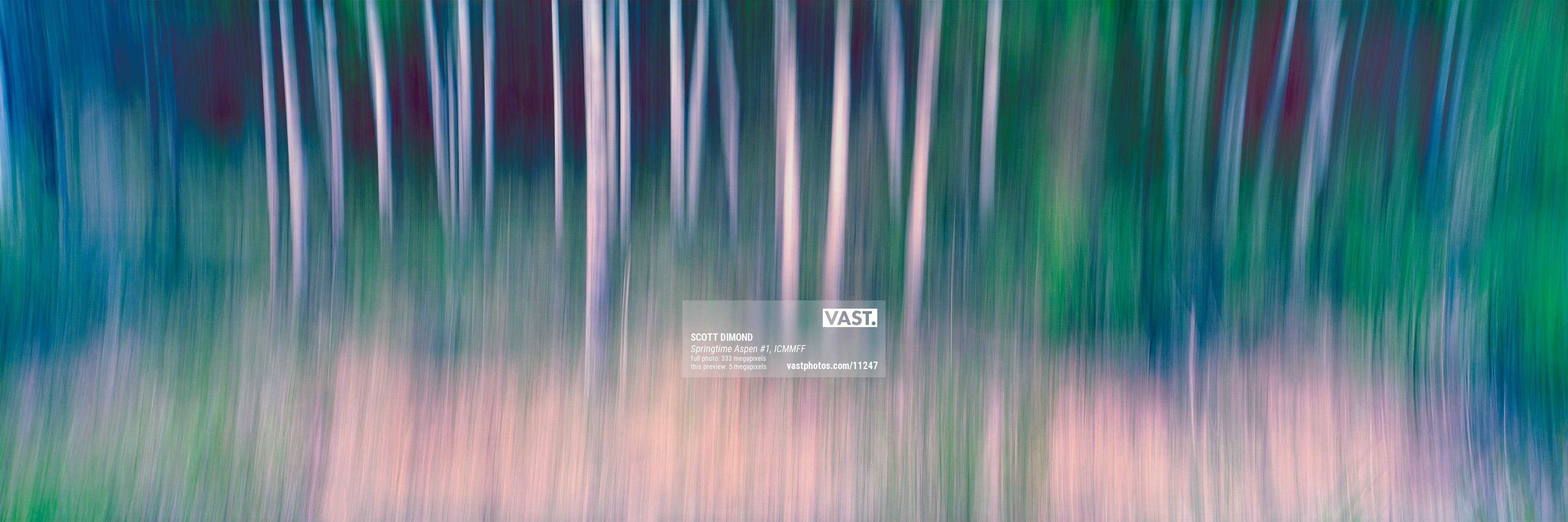 With the advent of digital cameras, the ability to create ICM photographs was simplified by being able to take a photo and review it immediately in camera. The camera movement necessary to create the desired ICM effect can be achieved by experimenting and taking 10, 20, or more photos until what was seen on the camera back is satisfactory. But how could an ultra-high-resolution panoramic ICM image be created? In the digital world, panoramic images and other ultra-high-resolution photos are created by combining 10, 100, or even 1000s of photos using stitching software. As the camera is moved to fixed positions across the scene, each digital photo that is taken requires overlapping content. The camera and the subject in each photo must remain perfectly still so that the stitching software can identify which photos are to be combined by finding the identical content within the overlapping photos. This is the approach taken to produce most of the ultra-high-resolution photos available from VAST.