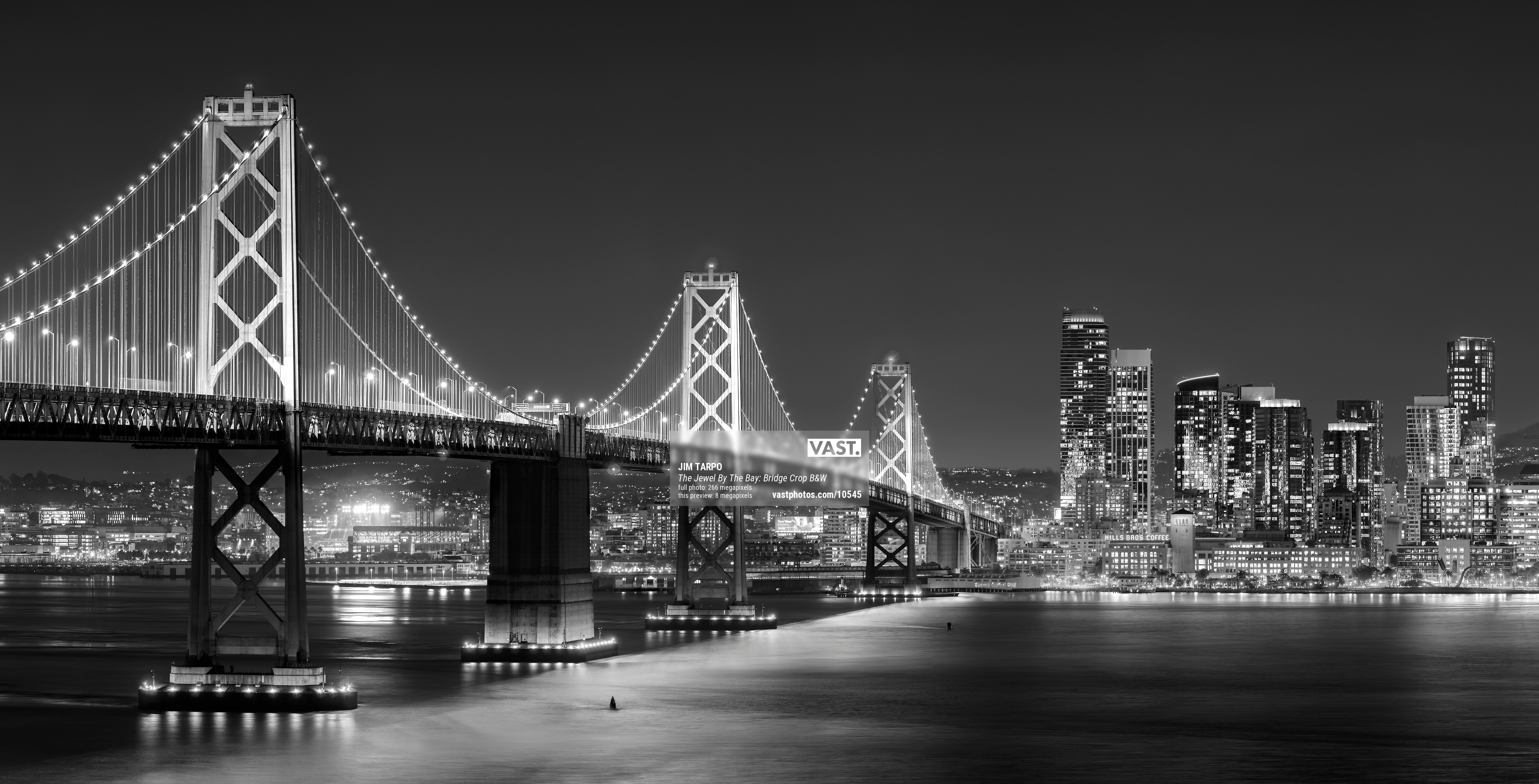 This Crop provides a great presentation of the Bay Bridge leading into the downtown area of San Francisco. For print s that are limited in width, this version holds its own very well for the more traditional aspect ratio print requirements. It presents the bridge in the same full detail that a larger print of the full images would.
