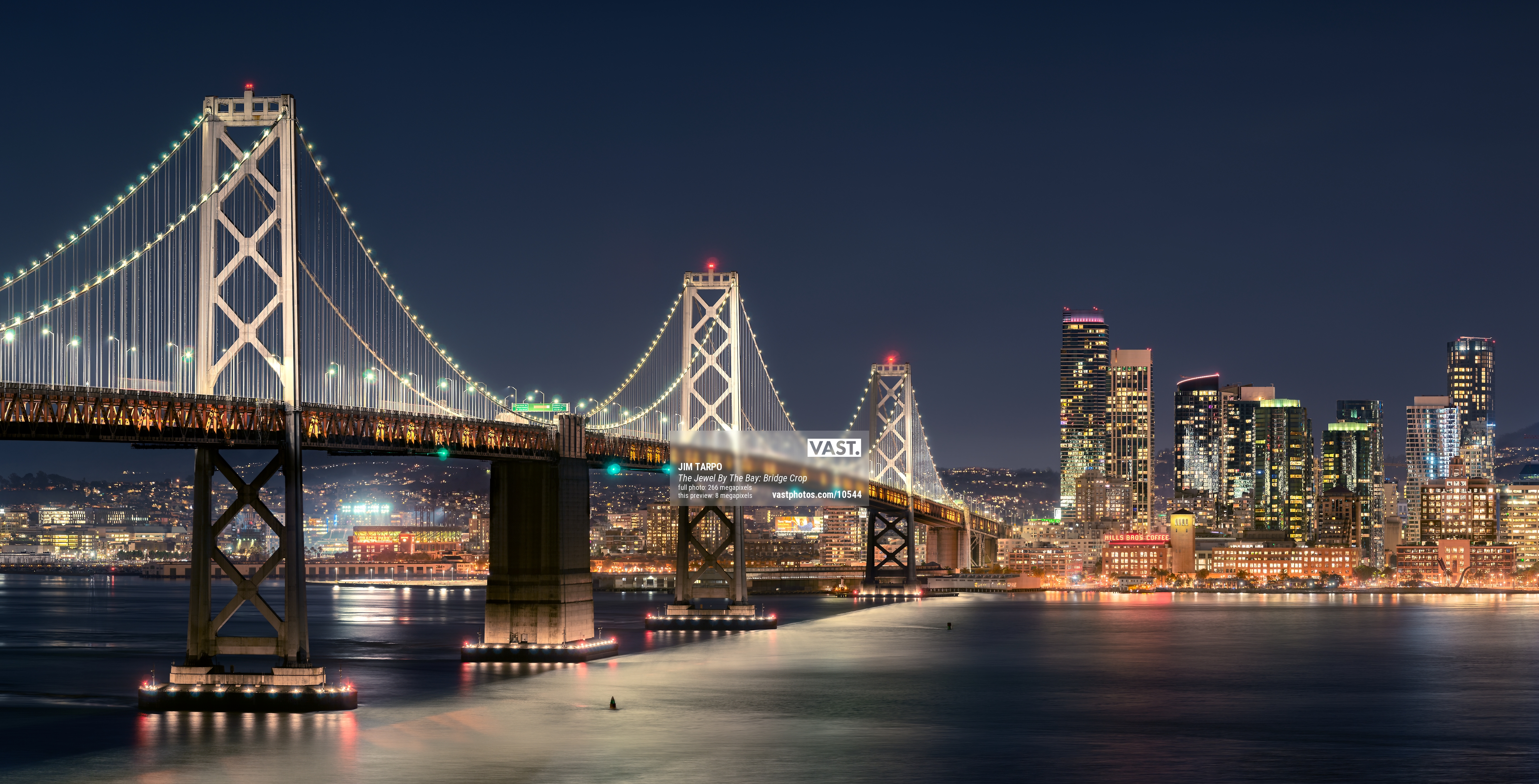 A close-up of "The Jewel By The Bay: Bridge Crop" by Jim Tarpo: an ultra-high-resolution VAST photo.