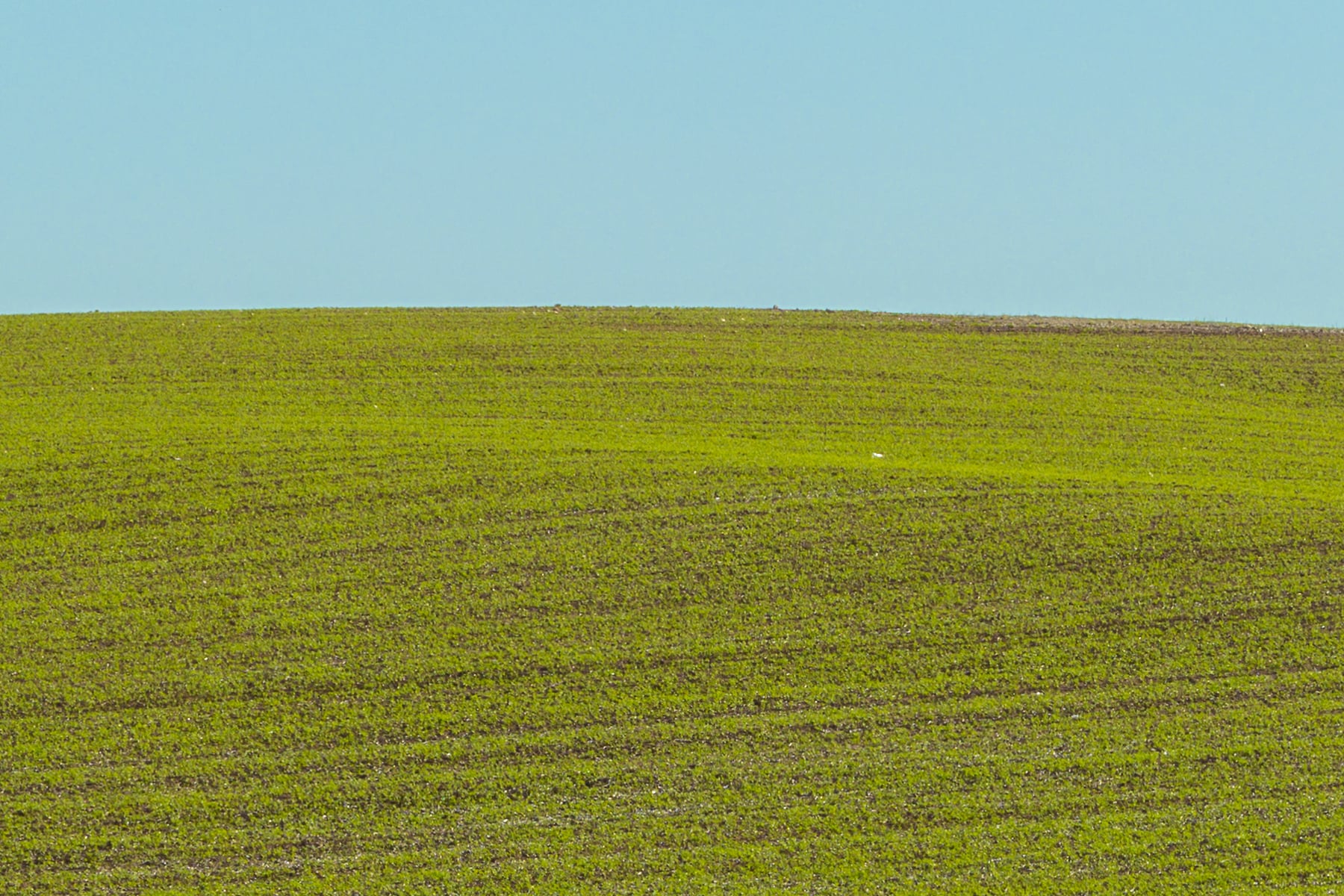 The gentle undulations of the land add a subtle texture to the scene, emphasising the natural contours and rhythm of the agricultural landscape. The absence of structures or human activity enhances the feeling of peaceful solitude, allowing viewers to appreciate the unspoiled beauty of the countryside fully.