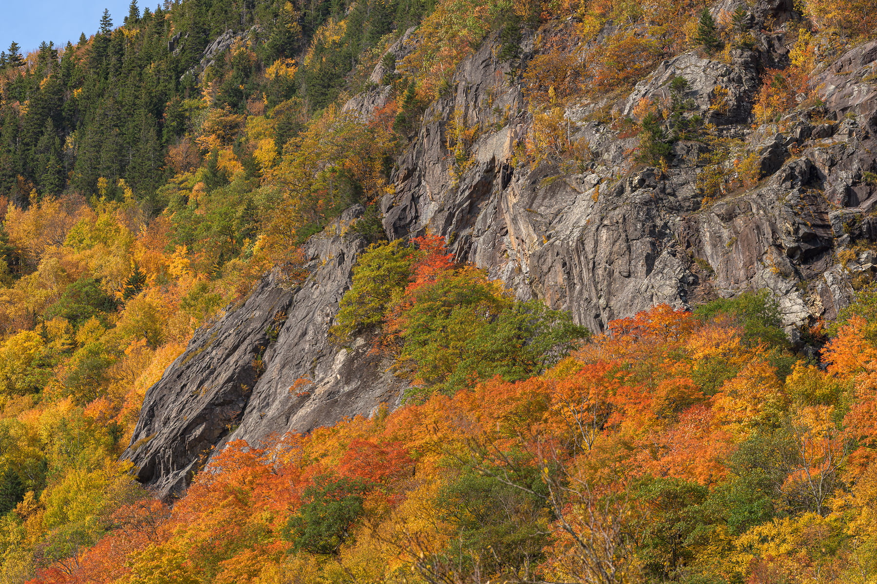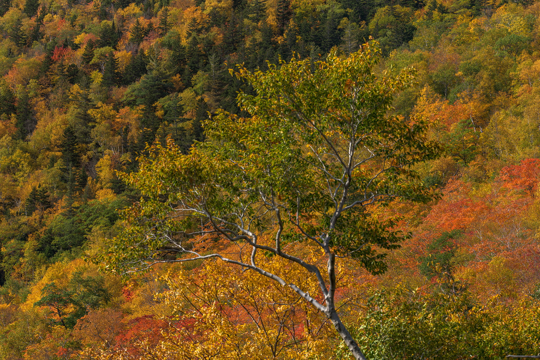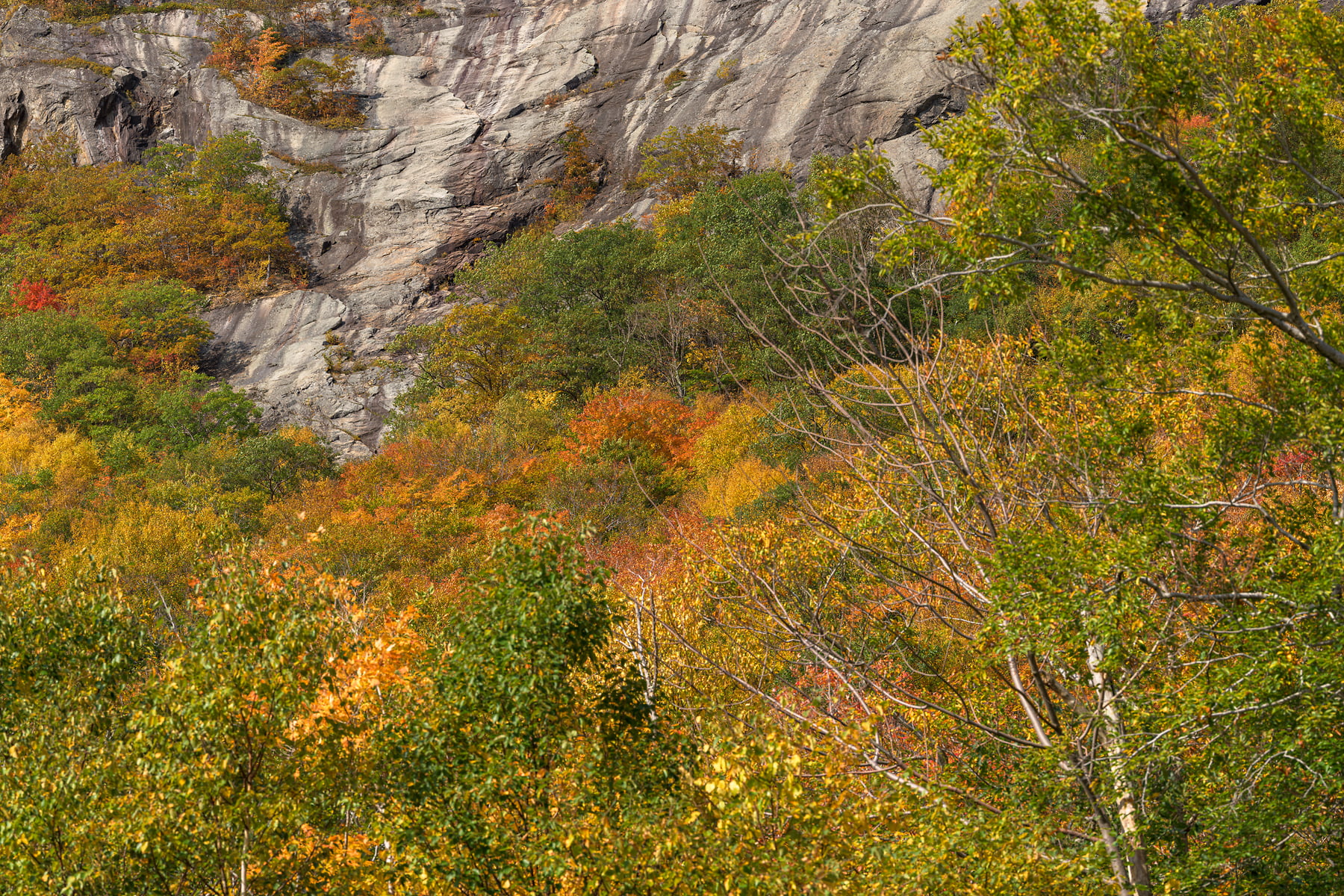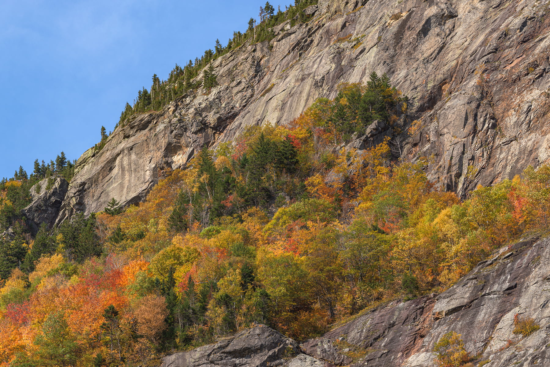 The Conway Scenic Railroad passes over the Willey Brook Trestle at Hart’s Location in the Crawford Notch of the White Mountains, New Hampshire, October 9, 2021, 12:24 – 13:41.