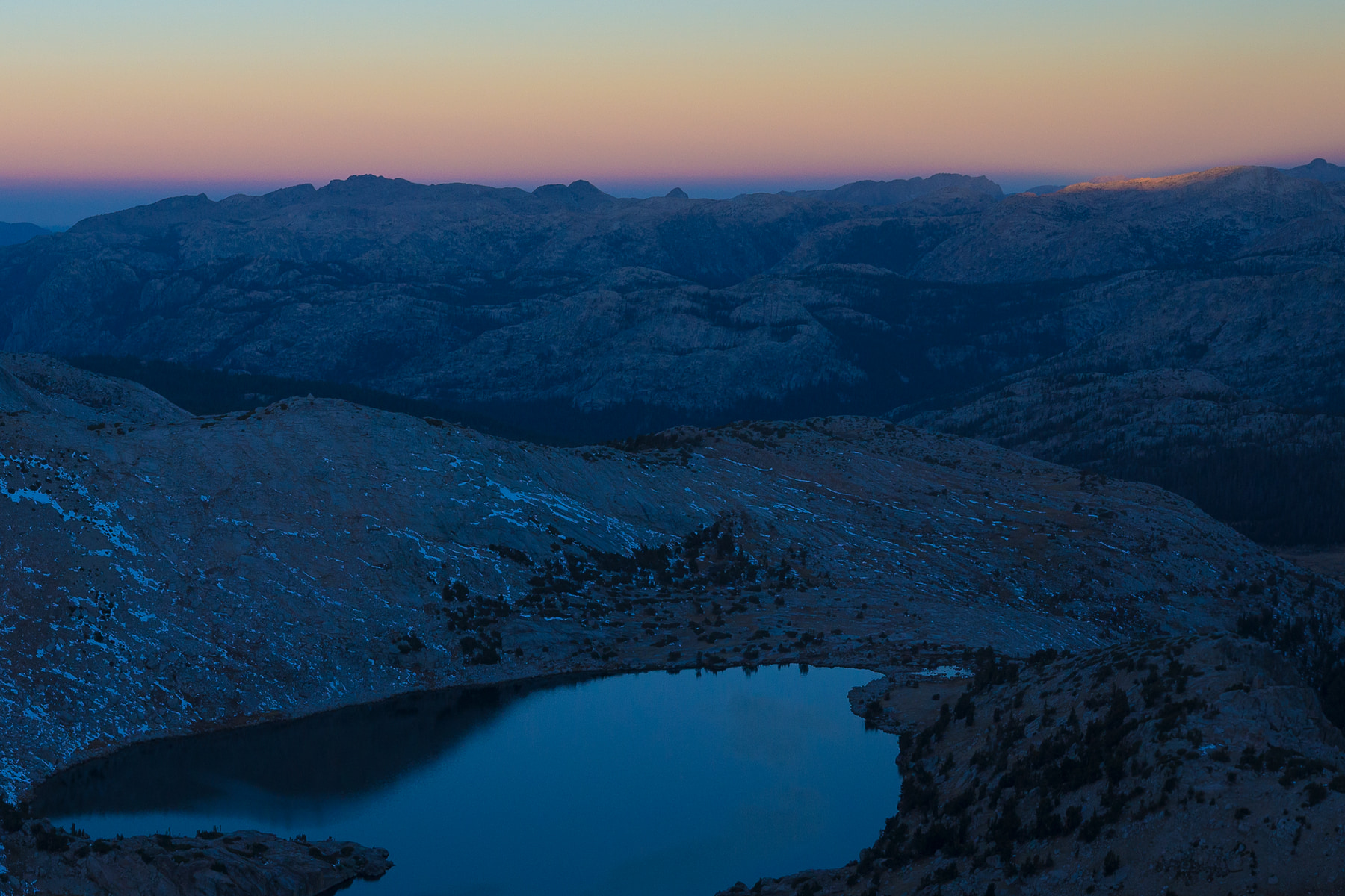 It was autumn and, after covering many miles in the dark, navigating the network of trails, lakes, and cross-country terrain above the spectacular 20 Lakes Basin Loop, I had accessed the magnificent Shepard Crest ridge. This striking point on the eastern boundary of Yosemite National Park is the perfect place to watch the first light of day fall on the glories of Yosemite.